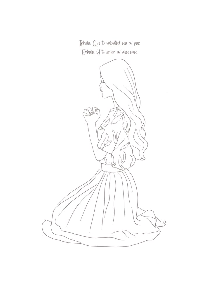 Cada ilustración se enfoca en una herida espirtual: soledad, ansiedad, falta de amor propio + "respi-oraciones" para tu alma.