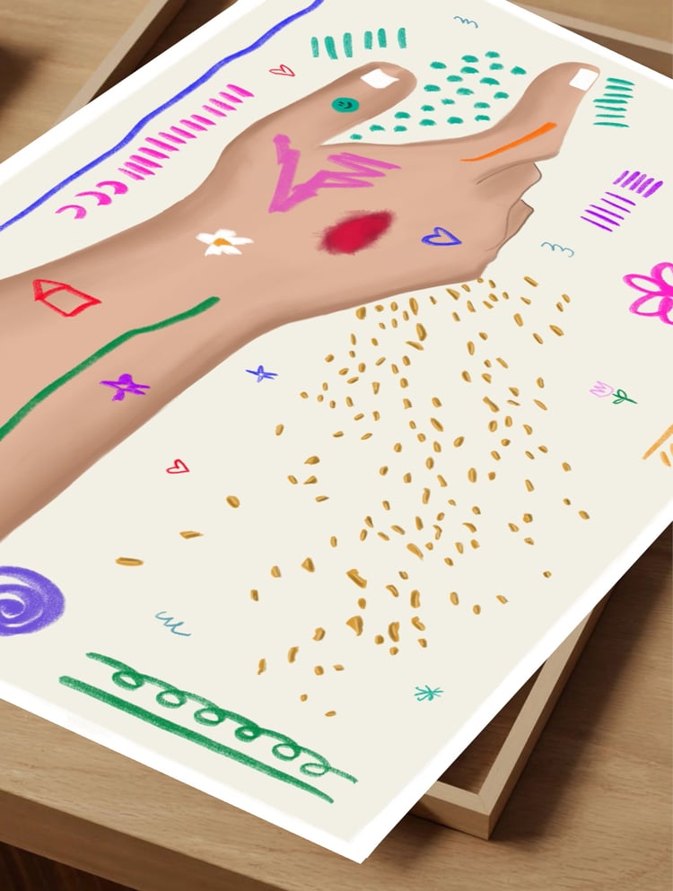 Los prints de HE·ART son láminas en alta calidad que reproducen fielmente las obras originales de la colección. Cada print es una versión digital de la obra, impresa en tamaño A3 sobre papel de 320 gramos, lista para disfrutar y contemplar.
